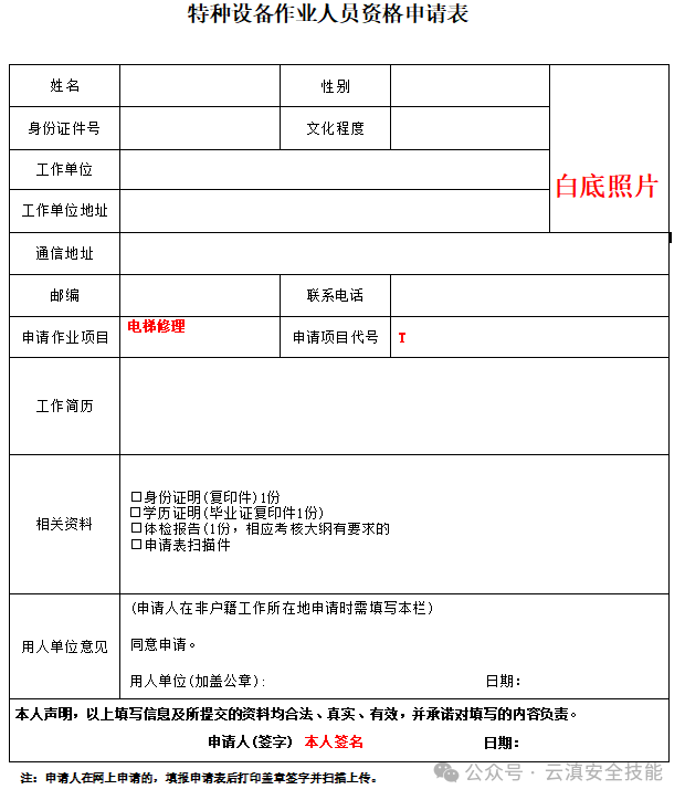 特種設(shè)備作業(yè)人員資格申請(qǐng)表
